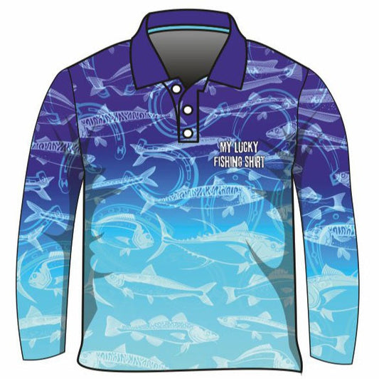 Fishing | Lucky Pattern Blue Fishing Shirt Long or Short Sleeve