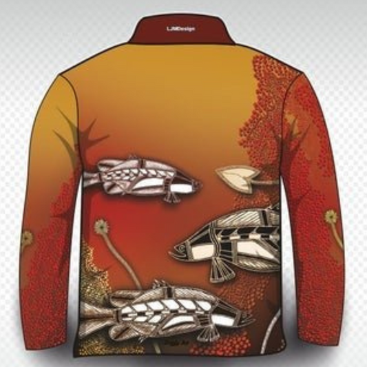 Indigenous Waterhole Barramundi Ochre Fishing Shirt