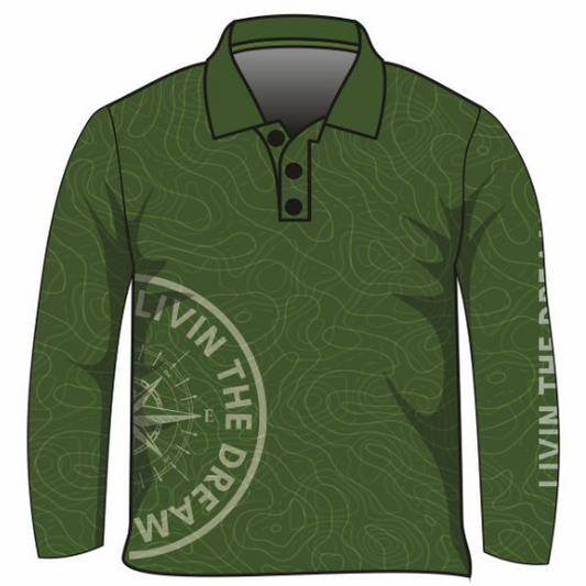 Pattern Topography Compass Green Shirt Long or Short Sleeve
