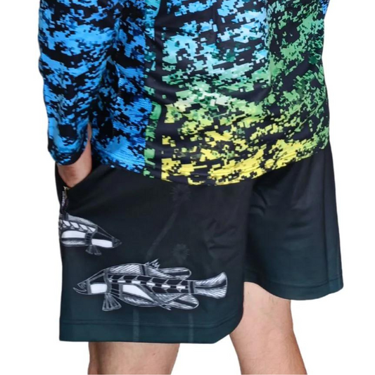 Rugby Shorts | Indigenous Waterhole Barramundi Black Shorts